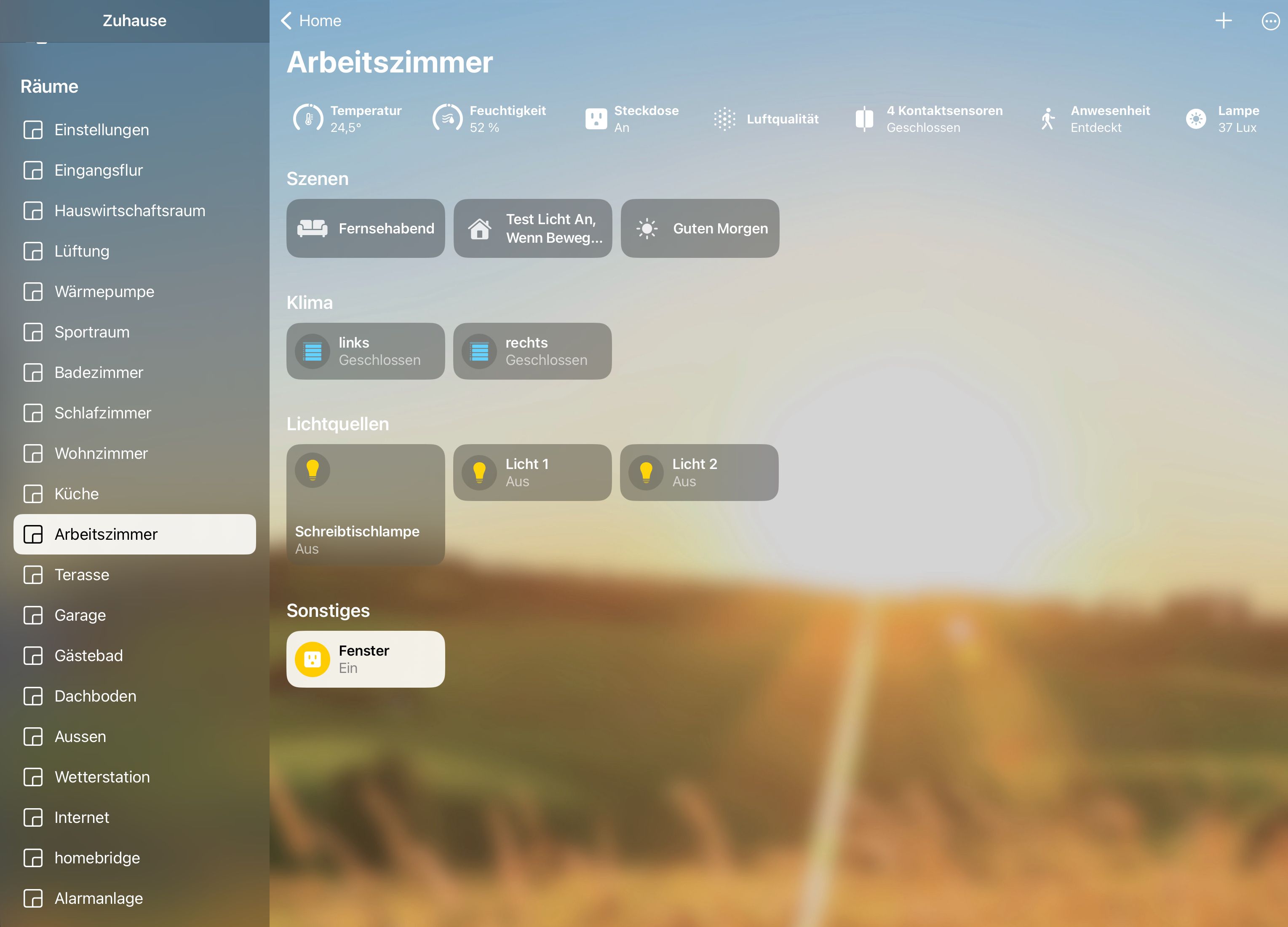 Hier finde ich es interessant was der eine oder andere aus den doch recht begrenzten Möglichkeiten von Homekit oft rausholt: Was verbirgt sich denn so in den Räumen wie "Einstellungen, Wärmepumpe, Alarmanlage, Wetterstation, Internet, Homebridge"?@black-falcon87 hier mal ein paar Bilder