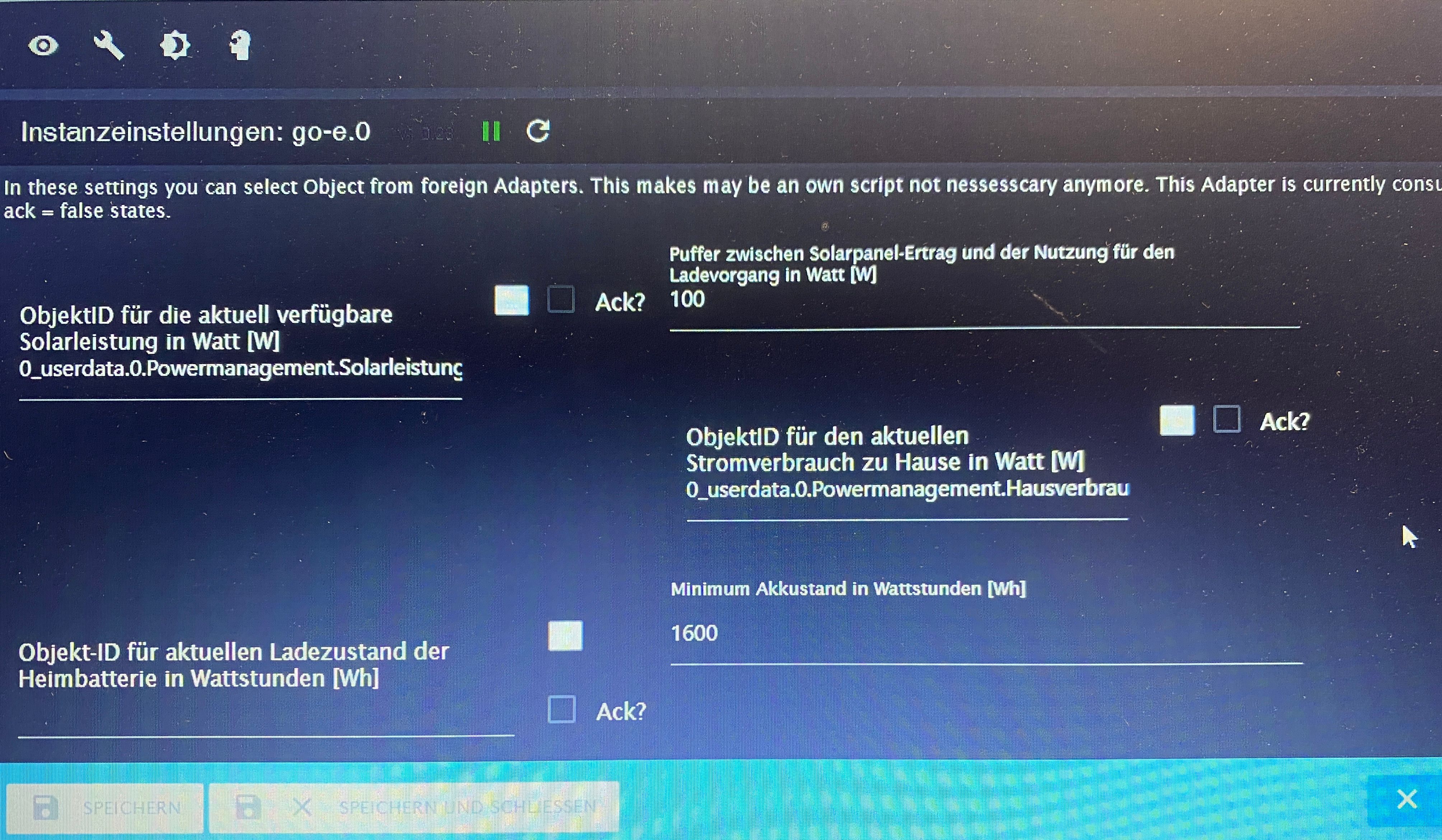 Ok😳. Habe es den ganzen Tag auf und ab versucht. Die Wallbox hat nie etwas angepasst. Probiere morgen mal den Adapter neu zu installieren. Hier noch meine konfi