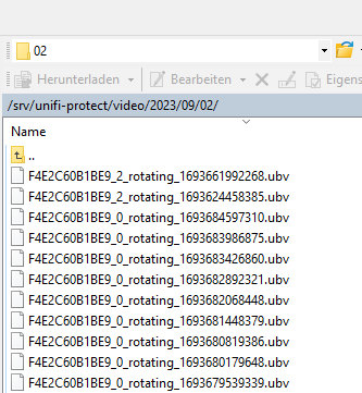 Also die Videos die ich auch über die Unify-Weboberfläche downloaden kann: