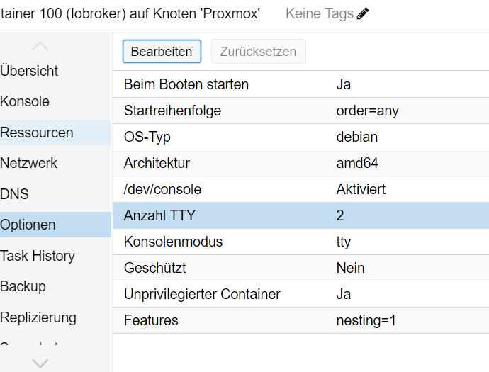 der iobroker läuft in einem lxc container..