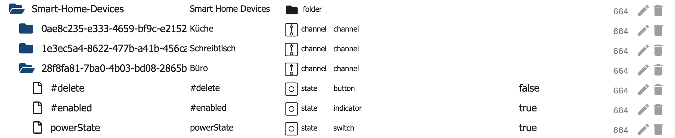 In den Objekten des Alexa Adapters sind alle Steckdosen im Ordner Smart-Home-Devices erkennbar und man kann auf den Power Eintrag eine Umschaltung auslösen.