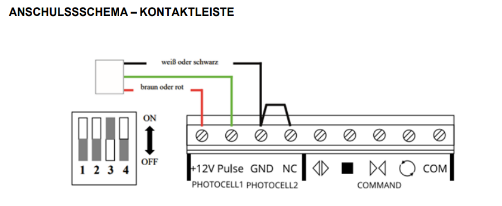 Schau dir doch bitte die verlinkte Anleitung an (sofern sie zu deinem Tor passt). Da gibts viiiiel mehr Infos. Der Ausschnitt den du oben zeigts beschreibt den Anschluss einer Kontaktleiste. Das ist ein Sicherheitselement am unteren Rand des Tors und hat nichts mit einer Bedienungssteuerung zu tun.
