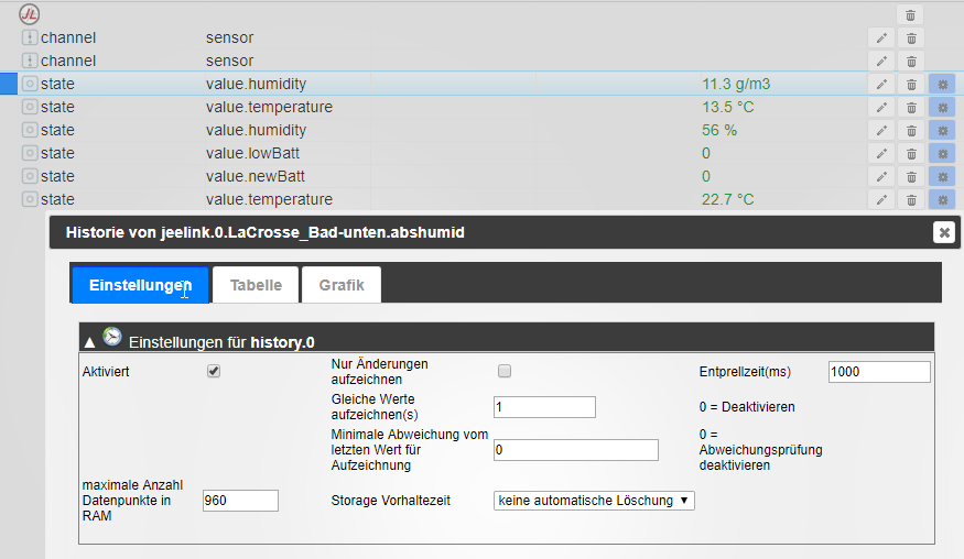 Aber so oder so: bei deinen Datennmengen würde ich eh von History abraten und ne InfluxDB oder SQL-DB nehmen.