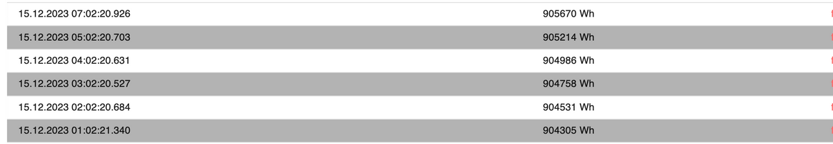 Auszug aus Log. Skript heißt Netzladen.2023-12-18 00:02:22.271 - info: javascript.0 (10388) script.js.Batterie_Netzladen: 909932 2023-12-18 00:02:22.321 - info: fritzdect.0 (10589) DECT ID: 116570243229 identified for command (state) : true 2023-12-18 00:02:46.084 - info: web.0 (10634) ==> Connected system.user.admin from ::ffff:192.168.178.83 2023-12-18 00:07:47.051 - info: web.0 (10634) <== Disconnect system.user.admin from ::ffff:192.168.178.83 vis.0 2023-12-18 00:15:00.014 - info: javascript.0 (10388) script.js.Skript_Shelly_Verbrauch: Shelly Verbrauch: Verbrauchswerte aktualisiert: 1 | Reboots korrigiert: 0 | Unveränderte Werte: 4 2023-12-18 00:30:00.015 - info: javascript.0 (10388) script.js.Skript_Shelly_Verbrauch: Shelly Verbrauch: Verbrauchswerte aktualisiert: 1 | Reboots korrigiert: 0 | Unveränderte Werte: 4 2023-12-18 00:43:41.104 - error: bmw.0 (10574) update failed 2023-12-18 00:43:41.107 - error: bmw.0 (10574) AxiosError: Request failed with status code 403 2023-12-18 00:43:41.107 - error: bmw.0 (10574) {"statusCode":403,"message":"Out of call volume quota. Quota will be replenished in 00:16:19."} 2023-12-18 00:45:00.013 - info: javascript.0 (10388) script.js.Skript_Shelly_Verbrauch: Shelly Verbrauch: Verbrauchswerte aktualisiert: 1 | Reboots korrigiert: 0 | Unveränderte Werte: 4 2023-12-18 00:58:41.104 - error: bmw.0 (10574) update failed 2023-12-18 00:58:41.105 - error: bmw.0 (10574) AxiosError: Request failed with status code 403 2023-12-18 00:58:41.105 - error: bmw.0 (10574) {"statusCode":403,"message":"Out of call volume quota. Quota will be replenished in 00:01:19."} 2023-12-18 00:59:57.618 - warn: modbus.0 (10433) Error: undefined 2023-12-18 00:59:57.619 - error: modbus.0 (10433) Request timed out. 2023-12-18 00:59:57.620 - error: modbus.0 (10433) Client in error state. 2023-12-18 00:59:57.620 - warn: modbus.0 (10433) Poll error count: 1 code: {"err":"timeout","timeout":5000} 2023-12-18 00:59:58.620 - info: modbus.0 (10433) Disconnected from slave 192.168.178.28 2023-12-18 01:00:00.014 - info: javascript.0 (10388) script.js.Skript_Shelly_Verbrauch: Shelly Verbrauch: Verbrauchswerte aktualisiert: 1 | Reboots korrigiert: 0 | Unveränderte Werte: 4 2023-12-18 01:00:20.841 - info: tibberlink.0 (10604) State value to set for "0_userdata.0.Tibberlink_Kanäle.beste_Stundenblock" has to be type "number" but received type "boolean" 2023-12-18 01:00:20.849 - info: tibberlink.0 (10604) State value to set for "0_userdata.0.Tibberlink_Kanäle.beste_Stundenblock" has to be type "number" but received type "boolean" 2023-12-18 01:00:20.853 - info: tibberlink.0 (10604) State value to set for "0_userdata.0.Tibberlink_Kanäle.beste_Kosten" has to be type "number" but received type "boolean" 2023-12-18 01:00:20.904 - info: tibberlink.0 (10604) State value to set for "0_userdata.0.Tibberlink_Kanäle.beste_Kosten" has to be type "number" but received type "boolean" 2023-12-18 01:00:34.785 - info: shelly.0 (10448) [MQTT] Client Close: 192.168.178.100 (shellyplusplugs / shellyplusplugs-80646fe770c4 / shellyplusplugs#80646fe770c4#1) (false) 2023-12-18 01:00:58.626 - info: modbus.0 (10433) Connected to slave 192.168.178.28 2023-12-18 01:00:58.803 - info: shelly.0 (10448) [MQTT] Device with client id "shellyplusplugs-80646fe770c4" connected! 2023-12-18 01:02:20.836 - info: javascript.0 (10388) script.js.Batterie_Netzladen: true 2023-12-18 01:02:20.837 - info: javascript.0 (10388) script.js.Batterie_Netzladen: -689 2023-12-18 01:15:00.030 - info: javascript.0 (10388) script.js.Skript_Shelly_Verbrauch: Shelly Verbrauch: Verbrauchswerte aktualisiert: 1 | Reboots korrigiert: 0 | Unveränderte Werte: 4 2023-12-18 01:30:00.034 - info: javascript.0 (10388) script.js.Skript_Shelly_Verbrauch: Shelly Verbrauch: Verbrauchswerte aktualisiert: 1 | Reboots korrigiert: 0 | Unveränderte Werte: 4 2023-12-18 01:37:34.045 - info: host.iobroker Delete log file iobroker.2023-12-10.log.gz 2023-12-18 01:45:00.013 - info: javascript.0 (10388) script.js.Skript_Shelly_Verbrauch: Shelly Verbrauch: Verbrauchswerte aktualisiert: 2 | Reboots korrigiert: 0 | Unveränderte Werte: 3 2023-12-18 01:48:41.219 - error: bmw.0 (10574) update failed 2023-12-18 01:48:41.220 - error: bmw.0 (10574) AxiosError: Request failed with status code 403 2023-12-18 01:48:41.220 - error: bmw.0 (10574) {"statusCode":403,"message":"Out of call volume quota. Quota will be replenished in 00:11:19."} 2023-12-18 02:00:00.014 - info: javascript.0 (10388) script.js.Skript_Shelly_Verbrauch: Shelly Verbrauch: Verbrauchswerte aktualisiert: 2 | Reboots korrigiert: 0 | Unveränderte Werte: 3 2023-12-18 02:00:20.713 - info: tibberlink.0 (10604) State value to set for "0_userdata.0.Tibberlink_Kanäle.beste_Stundenblock" has to be type "number" but received type "boolean" 2023-12-18 02:00:20.716 - info: tibberlink.0 (10604) State value to set for "0_userdata.0.Tibberlink_Kanäle.beste_Stundenblock" has to be type "number" but received type "boolean" 2023-12-18 02:00:20.724 - info: tibberlink.0 (10604) State value to set for "0_userdata.0.Tibberlink_Kanäle.beste_Kosten" has to be type "number" but received type "boolean" 2023-12-18 02:00:20.735 - info: tibberlink.0 (10604) State value to set for "0_userdata.0.Tibberlink_Kanäle.beste_Kosten" has to be type "number" but received type "boolean" 2023-12-18 02:02:20.707 - info: javascript.0 (10388) script.js.Batterie_Netzladen: true 2023-12-18 02:02:20.707 - info: javascript.0 (10388) script.js.Batterie_Netzladen: 1128 2023-12-18 02:05:05.075 - info: cloud.0 (10674) Connection changed: disconnect 2023-12-18 02:05:05.078 - info: cloud.0 (10674) Connection lost 2023-12-18 02:05:05.079 - info: cloud.0 (10674) Restart adapter by disconnect 2023-12-18 02:05:15.082 - warn: cloud.0 (10674) Terminated (-100): Without reason -