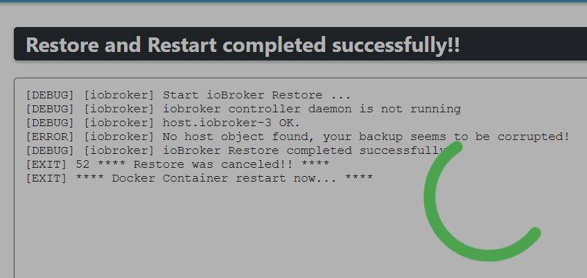 Hallo zusammen, ich habe ioBroker in der Version 4.0.23 am laufen mit der Node.js v14.20.0 und NPM 6.14.17 und würde dieses gerne updaten, da ich einige Adapter nicht mehr Updaten kann, wegen der Node.js Version, leider bekomme ich dieses garnicht hin. Ich habe erst versucht den IOboker zu updaten, dann kam zwar die Meldung im terminal das er updatet, es passierte aber nichts. So wie ich er nun verstanden habe durch suchen im Netz muss ich zuerst die Node.js updaten. Ich habe dann gelesen das man besser einen neuen Container installieren kann und dann einfach per Backitup einspielen soll. Beim einspielen das backup in der neuen IO Broker version kommt es aber zu folgender Fehlermeldung , siehe BildFehler IO Broker.JPG
