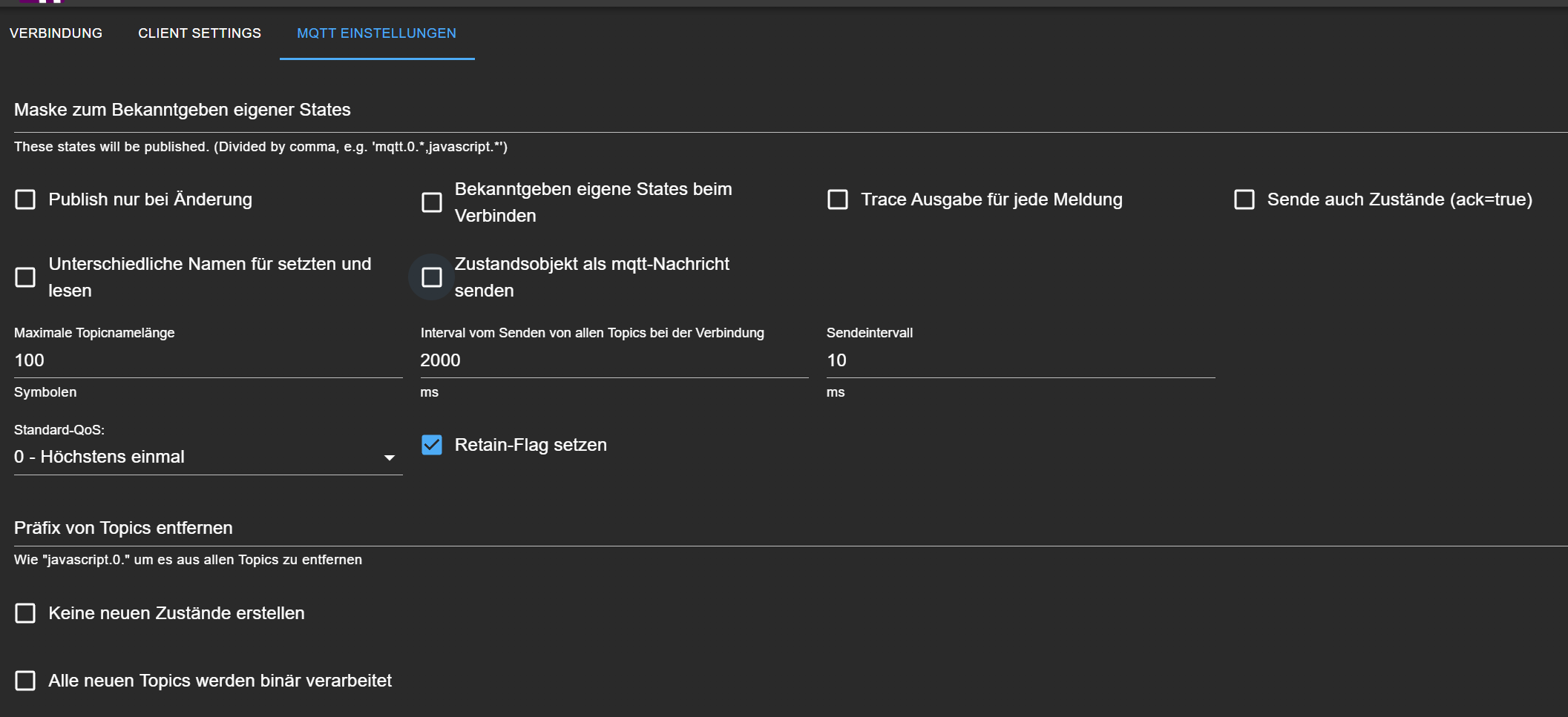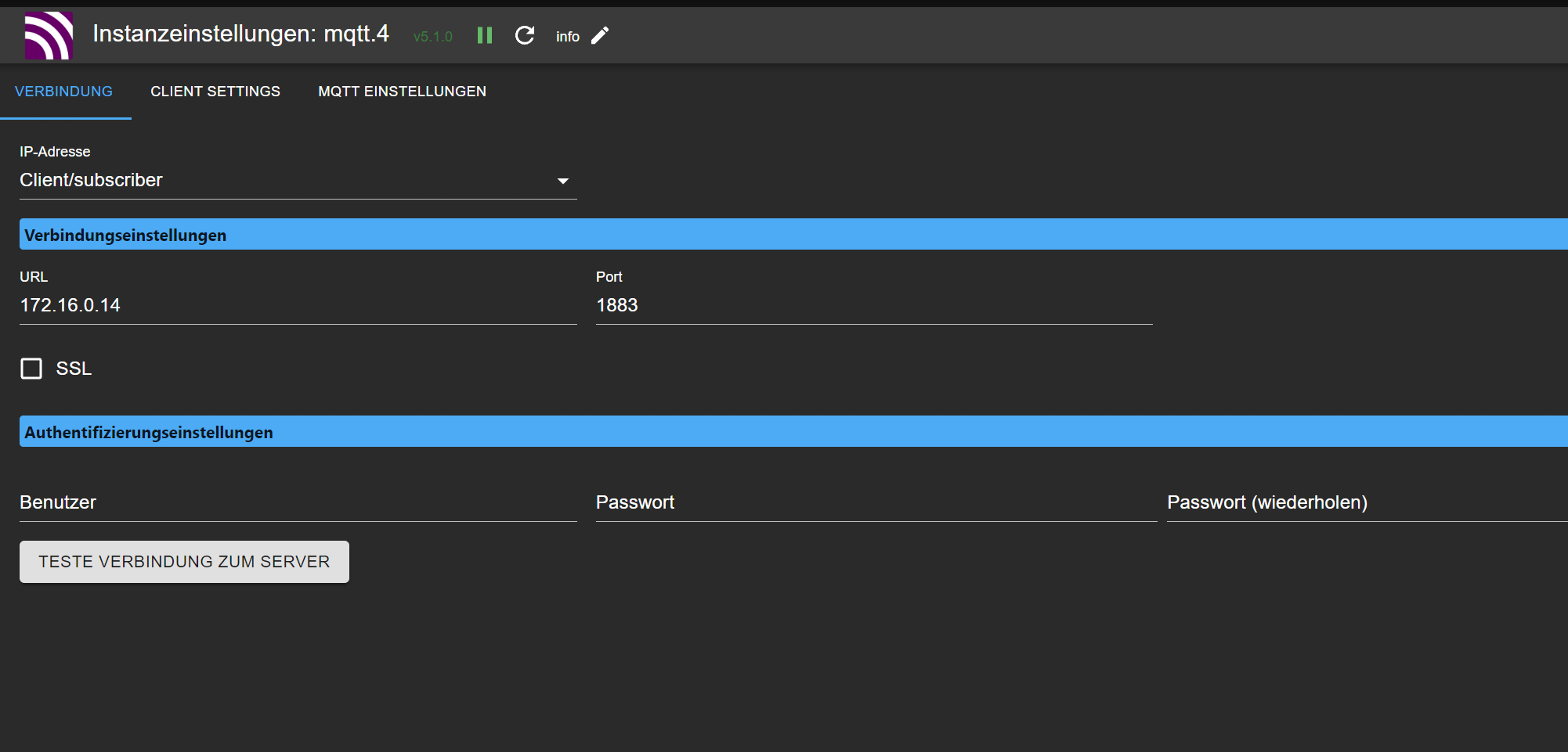 Ich habe im iobroker den mqtt Adapter als Client installiert und die Server daten eingegeben, die Verbindung ist da.