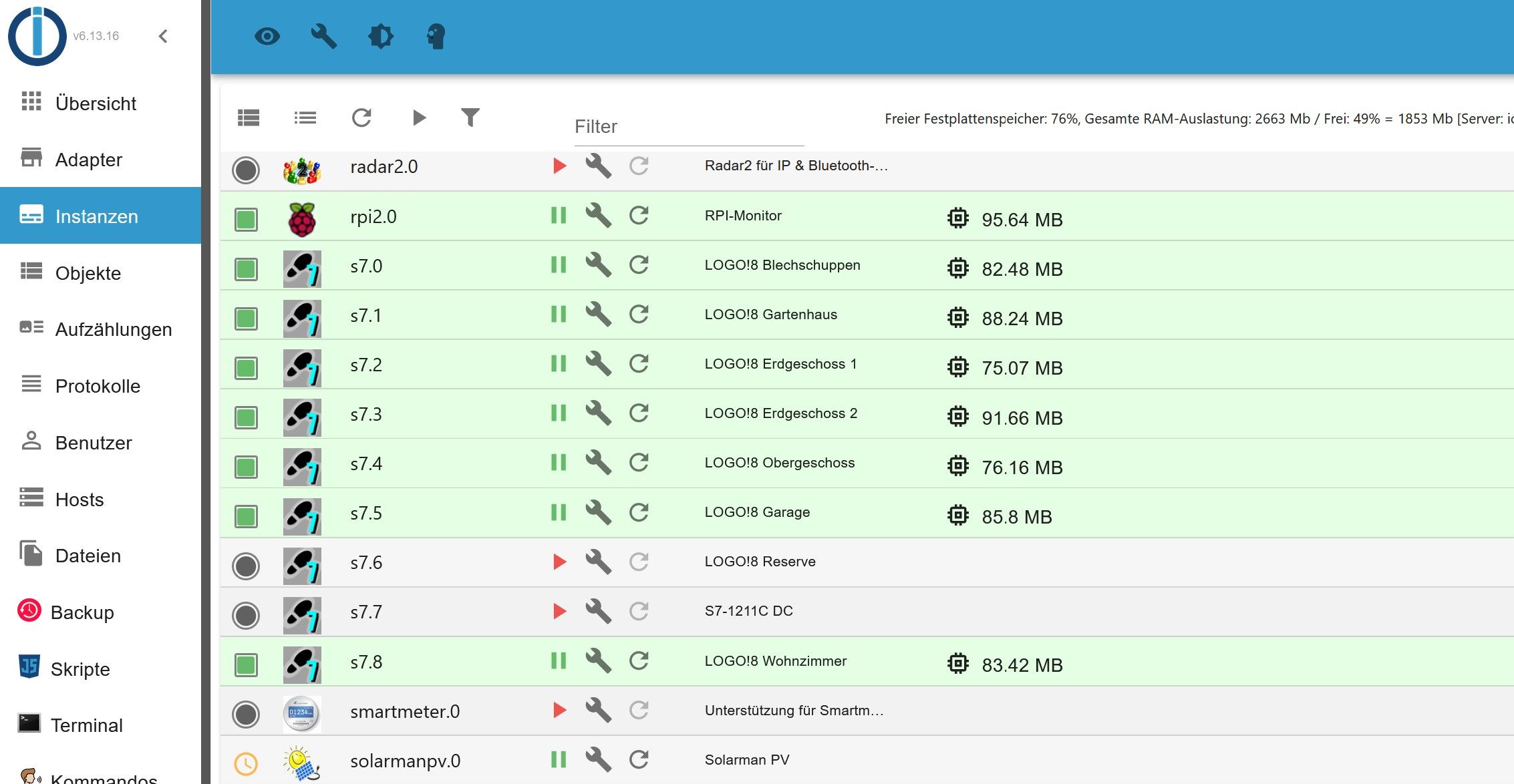 Wenn ich aber über Vis2 z.b. Signale an die Logo sende über die DB´s -> Netwerkeingänge der Logo dann kommen sie in der Logo an und die Logo schaltet dementsprechnd die Ausgänge. Die Logo Instanzen sind auch grün. Unter Objekte -> Info sind die Verbindungen auch True.