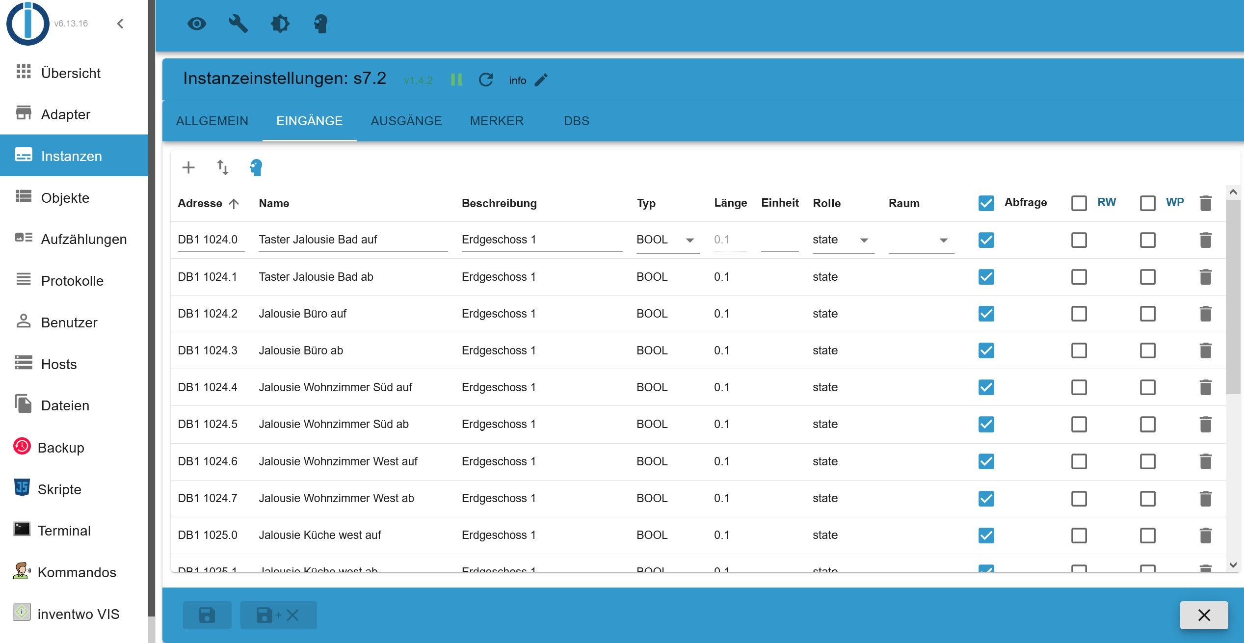 Aber 2 Logo´s haben das gleiche "Problem", dass ich sie nicht unter "Objekte" rücklesen kann. Wenn ich einen Hardware Taster an der Wand drücke kommt das nicht im iobroker Objekte an. Auch keine Zustände der Ausgänge... Bei keiner der Verbindungen an den beiden besagten Logos.