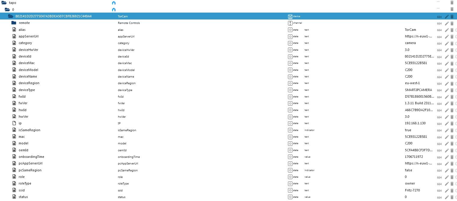 In der iob diag erscheint unter installierte Adapter tapo 0.0.8 auf, obwohl ich den doch zuvor entfernt hatte (die Angabe oben dass ich 0.0.2 entfernt hätte war falsch, es war 0.0.8)