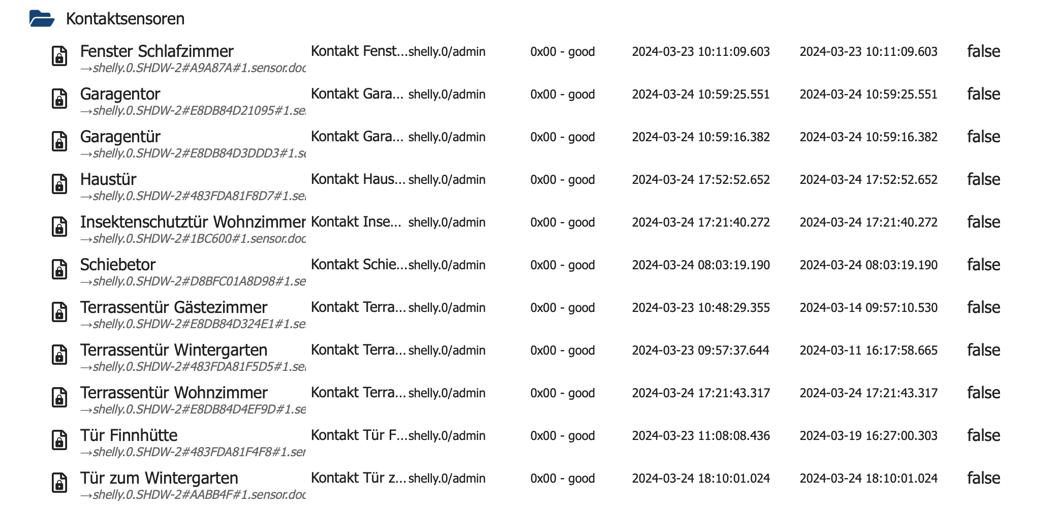 Ich habe diese Kontaktsensoren als alias-Werte mit dem State offen: