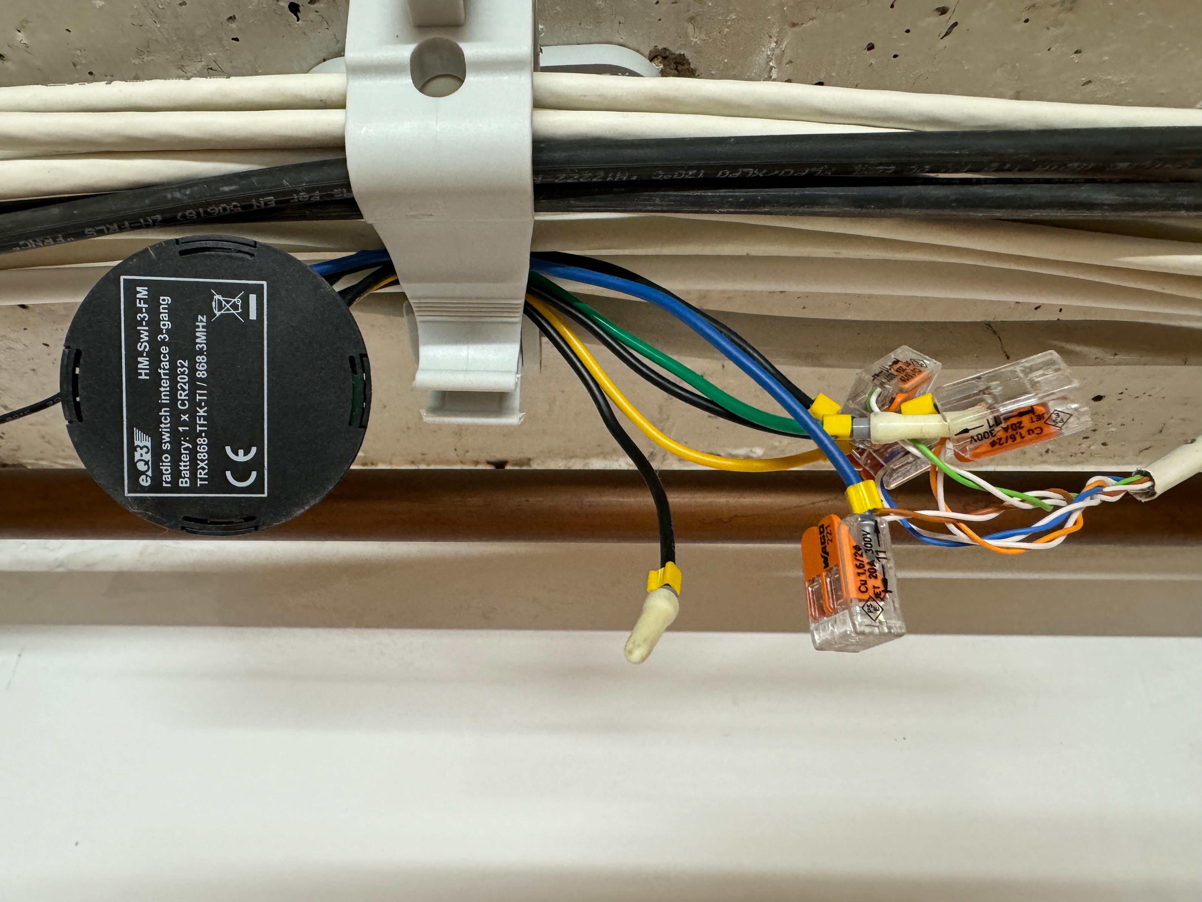 Das Problem an der ganzen Geschichte ist, dass die Leitung zwischen den Tastern und der Funkschnittstelle knapp 7 Meter lang ist (die Funkschnittstelle ist dafür eigentlich gar nicht ausgelegt). Es funktioniert, aber ich habe zwischenzeitlich auch ein paar Ausfälle.