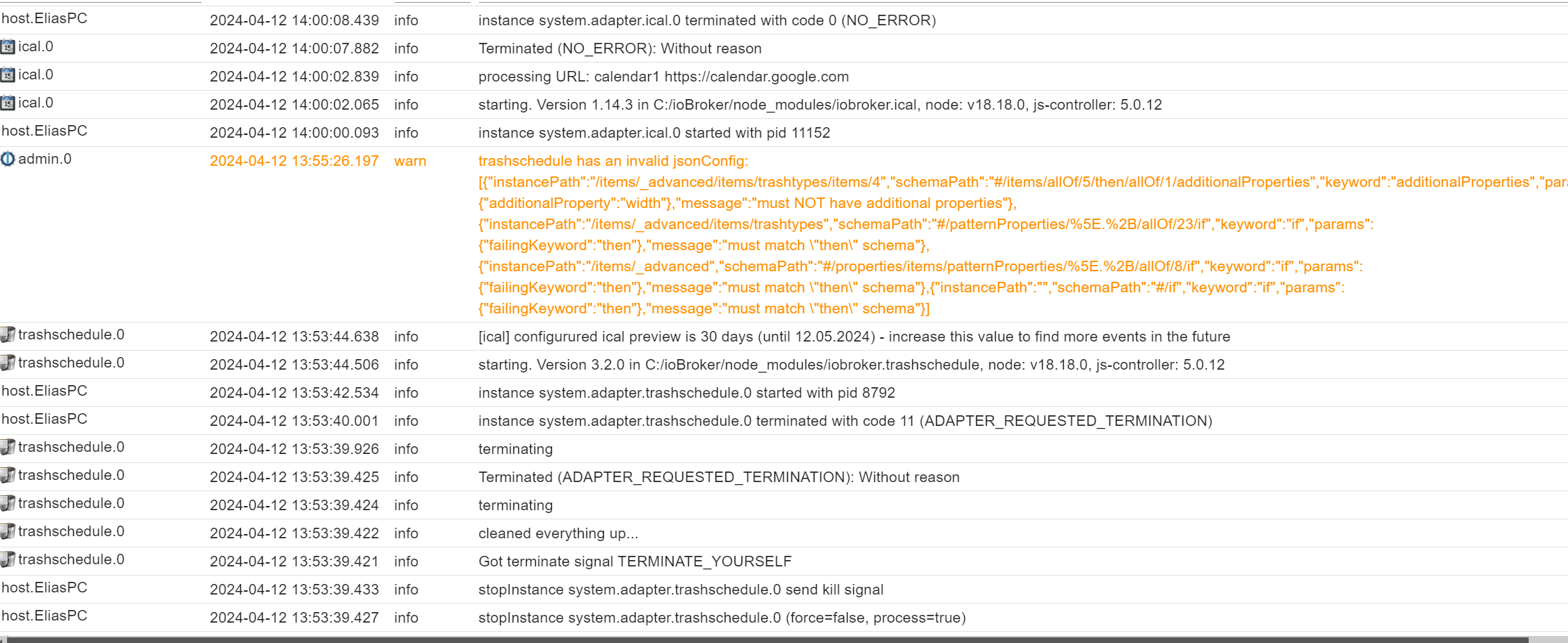 aber zum jsonConfig Warn gab es auch schon Posts@homoran said in Trashschedule Adapter KEine Verbindung zum Host:
