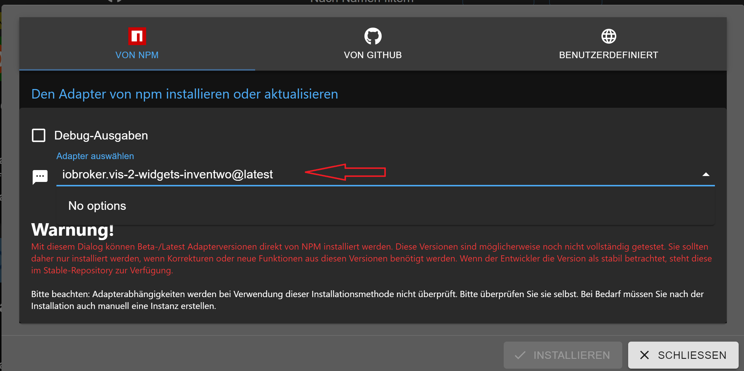 [gelöst]Install Adapter über npm ?
