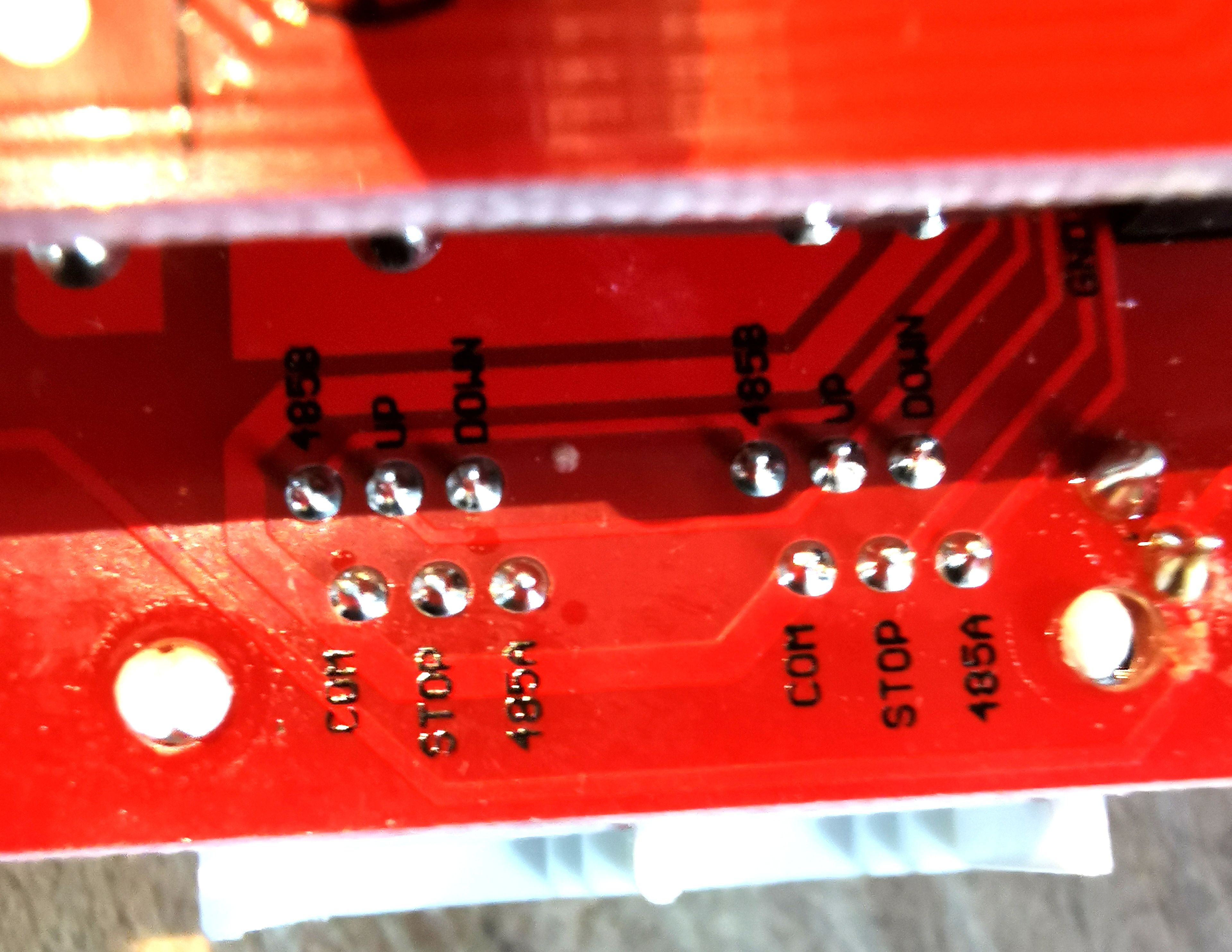 Es gibt dort 2 Platinen, Stromversorgung und Steuerung nehme ich an. Auf einer sind 2 RJ35 Anschlüsse die auch entsprechend beschriftet sind, auf-zu-Stopp usw.