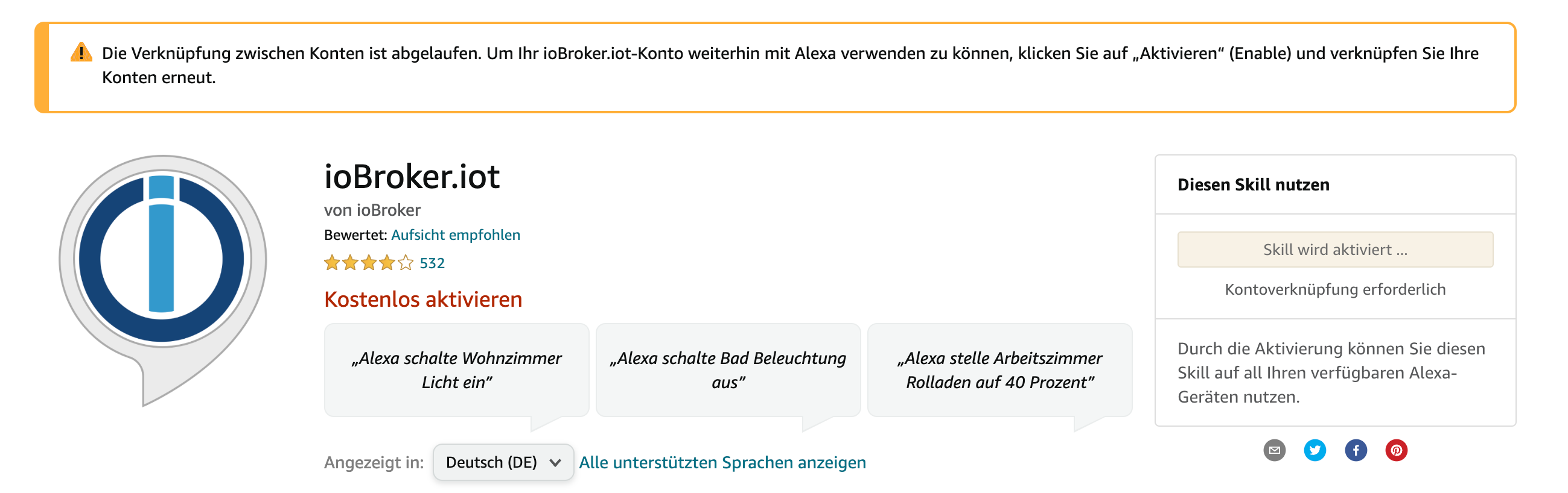 Nun meldet meine Alexa App auf dem Handy, dass ich mich im iobroker.iot Adapter neu anmelden muss...