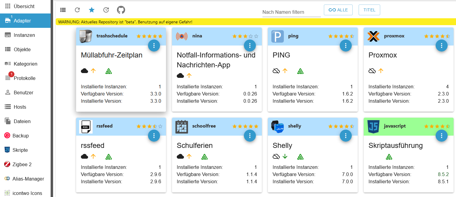 Admin Adapter Übersicht, kein "Update-Symbol"