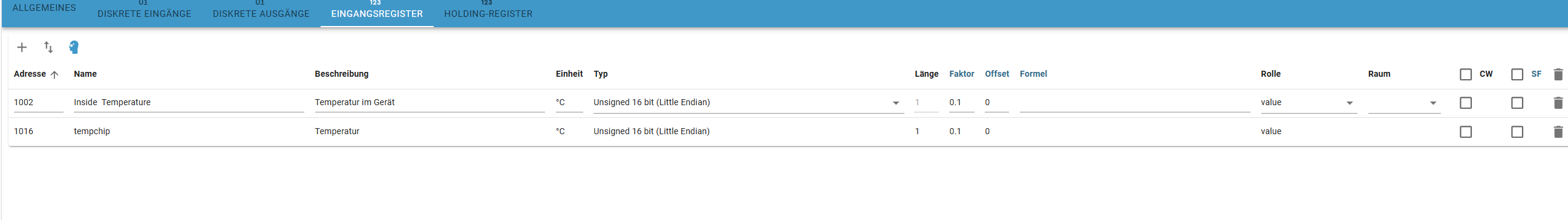 du hast Recht, ich muss die bei den Holding Register eintragen und auf polling. Dann macht der Modbusadapter nicht die +1. Muss also die originale Adresse nehmen.