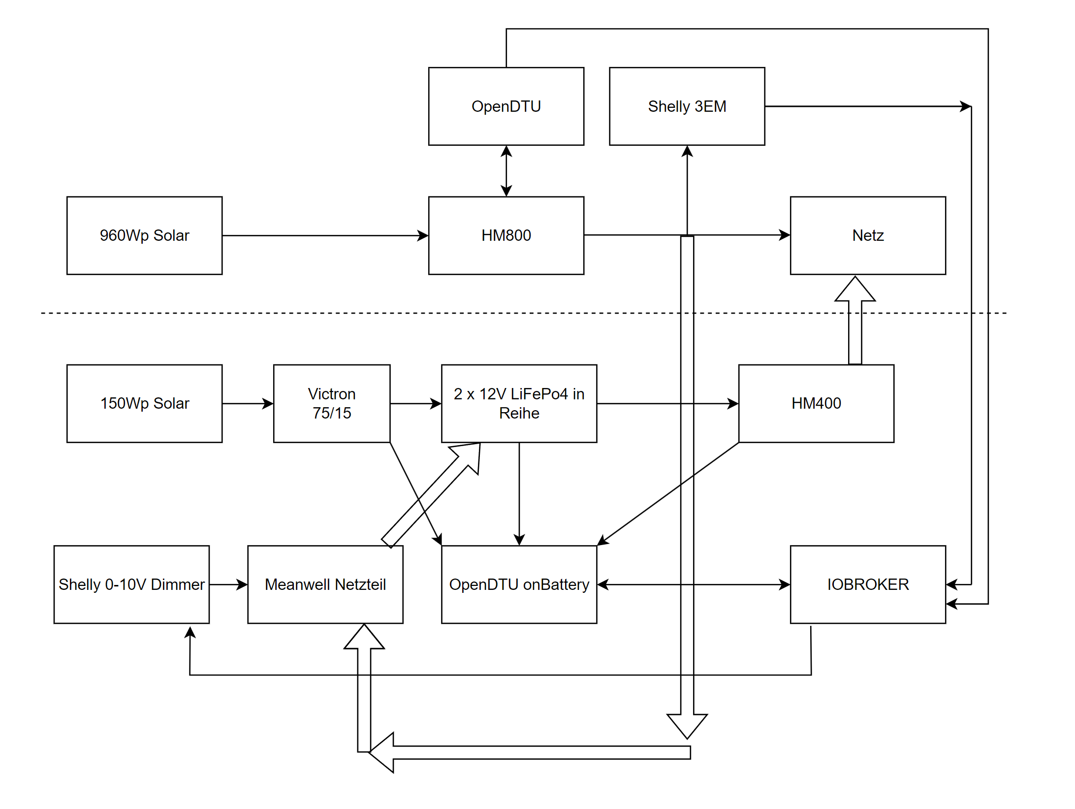 Ich habe ein 960Wp Balkonkraftwerk, bestehend aus 2 x 430Wp Modulen von Longhi und einem Hoymiles HM-800 - und wie es vielen ergeht - ärgert mich, das ich tagsüber, wenn ich arbeiten bin, die erzeuge Solarenergie sinnlos im Netz landet. Viele machen eine Nulleinspeisung, regeln also ihre Wechselrichterleistung auf den Hausverbrauch. Das ist eher nicht sinnvoll, weil die überschüssige Solarenergie einfach "verpufft".