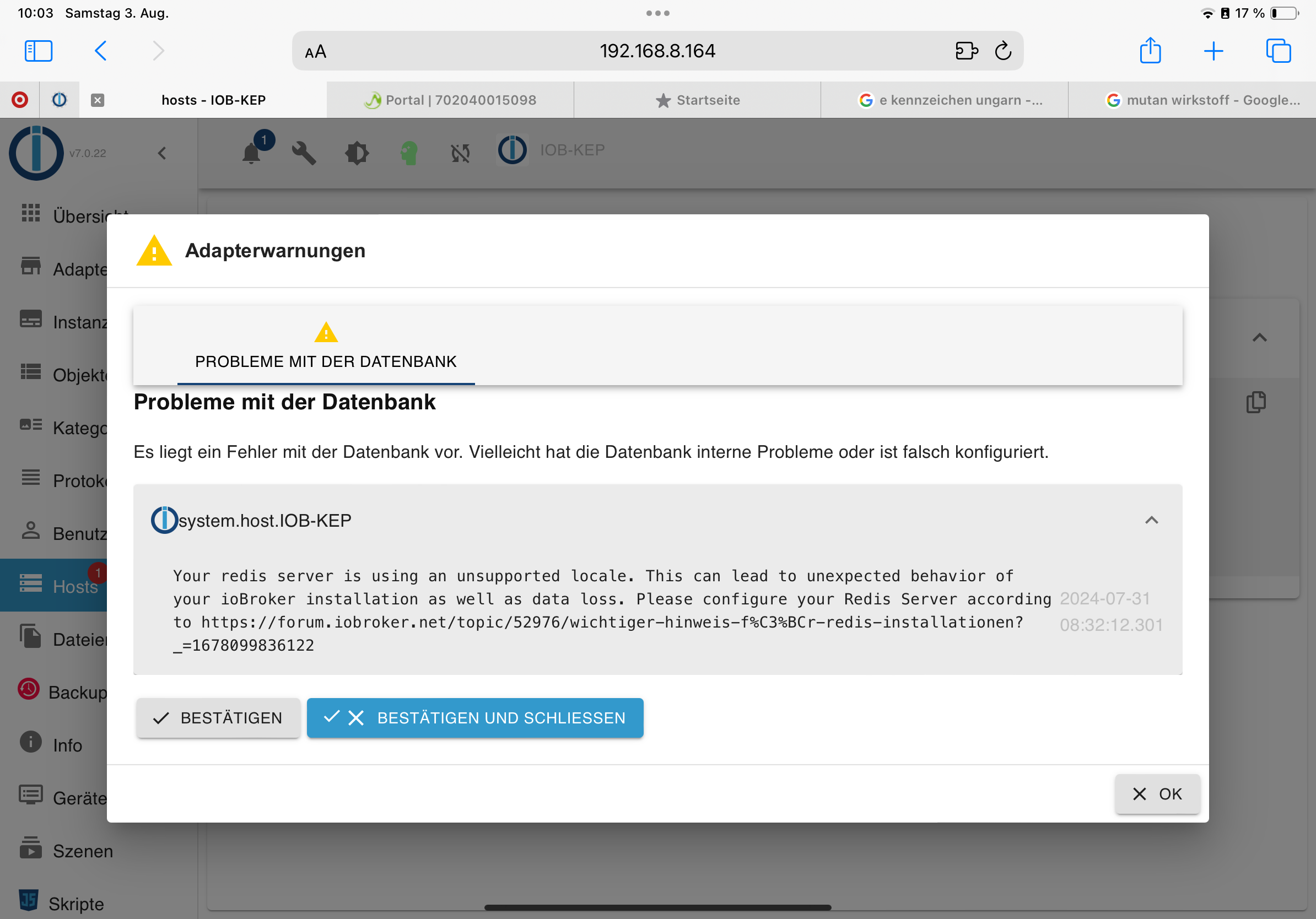 der raspi hat sich aber bereits mehrmals aufgehängt wobei ich ziemlich sicher bin, dass das ioBroker auslöst.