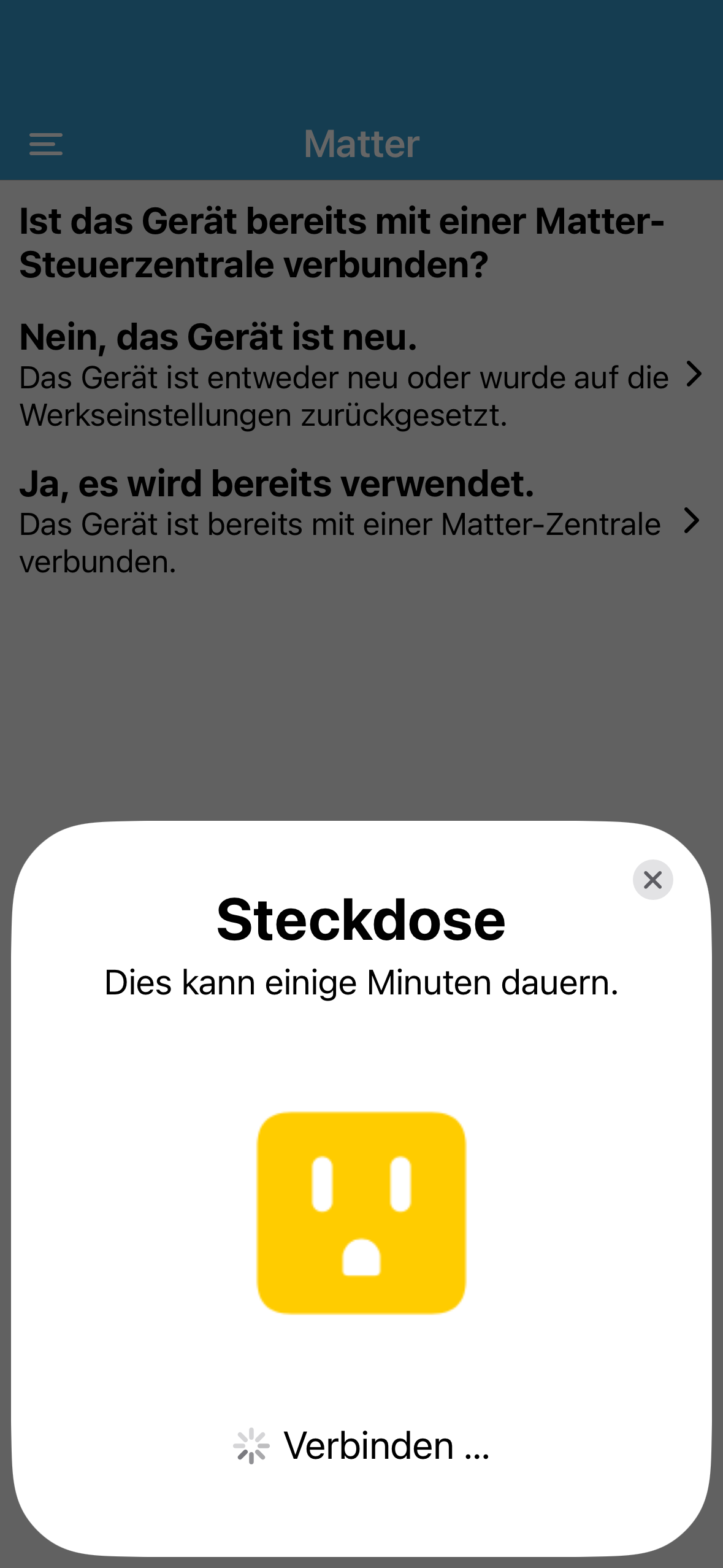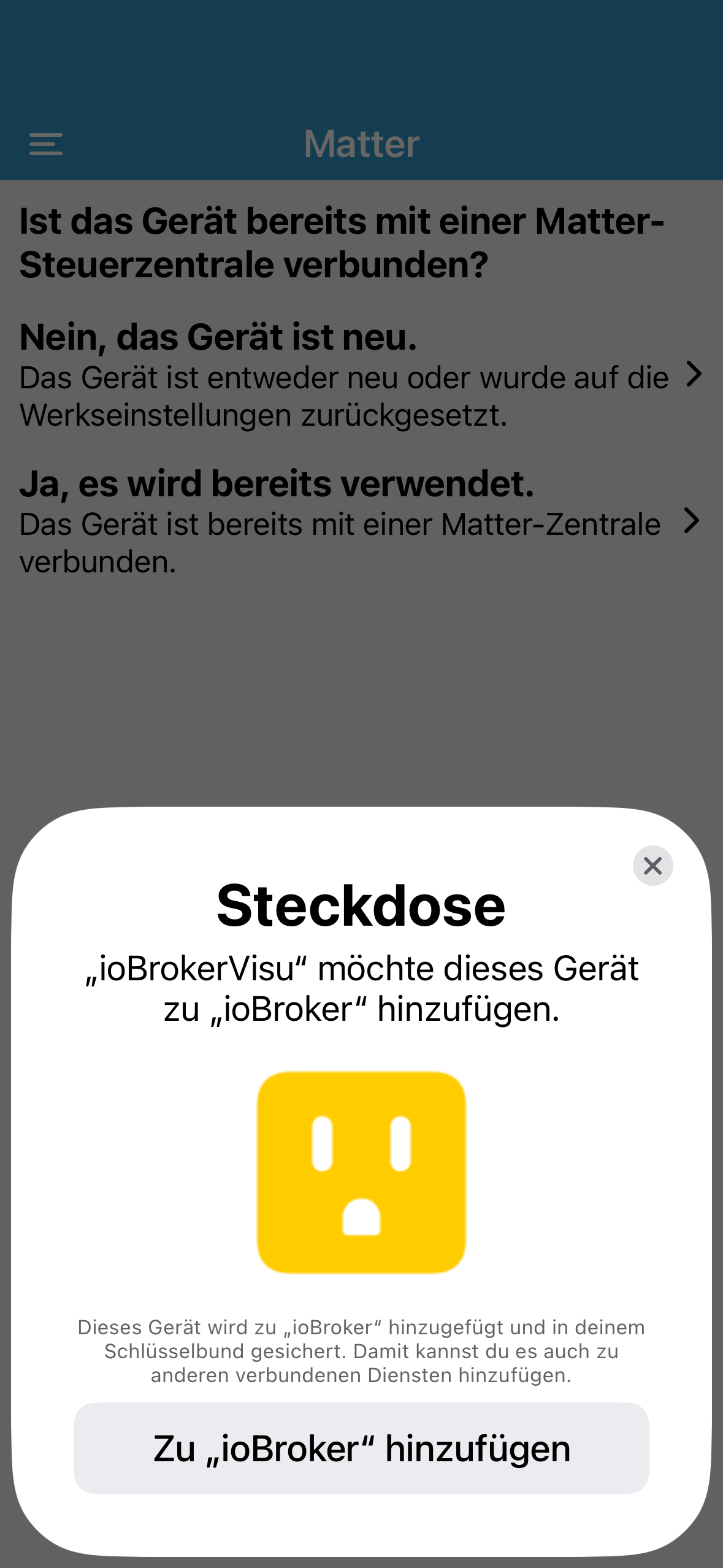 Dann habe ich die Matter Steckdose eingesteckt und mit der IOB App den Code gescannt: