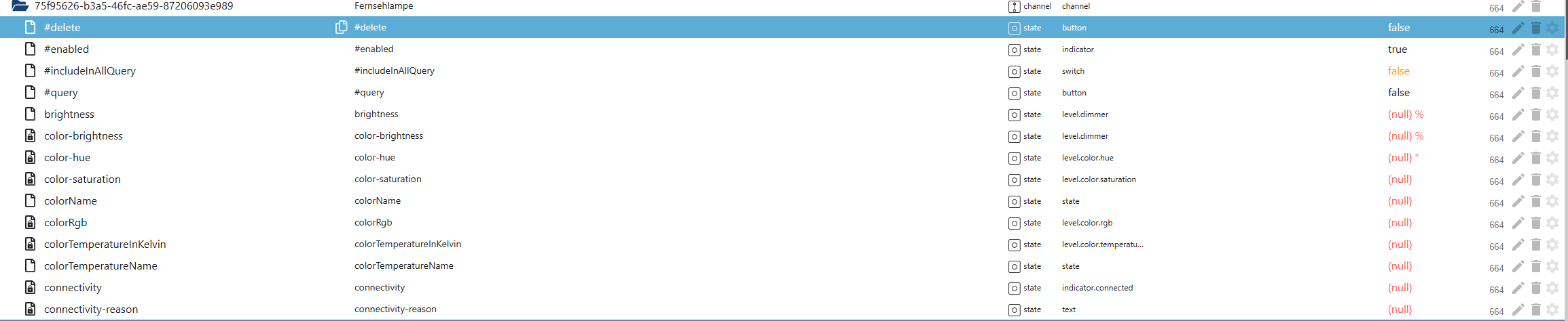 Jetzt möchte ich eine (Tasmota)Lampe einbinden. Inkl. Helligkeit, Farbwert ec.Wie kann ich das im Adapter umsetzen. Ich finde da nichts...? In diesem Beitrag steht irgendwas von "Gruppe". https://forum.iobroker.net/topic/24262/licht-farbe-helligkeit-über-alexa-setzen
