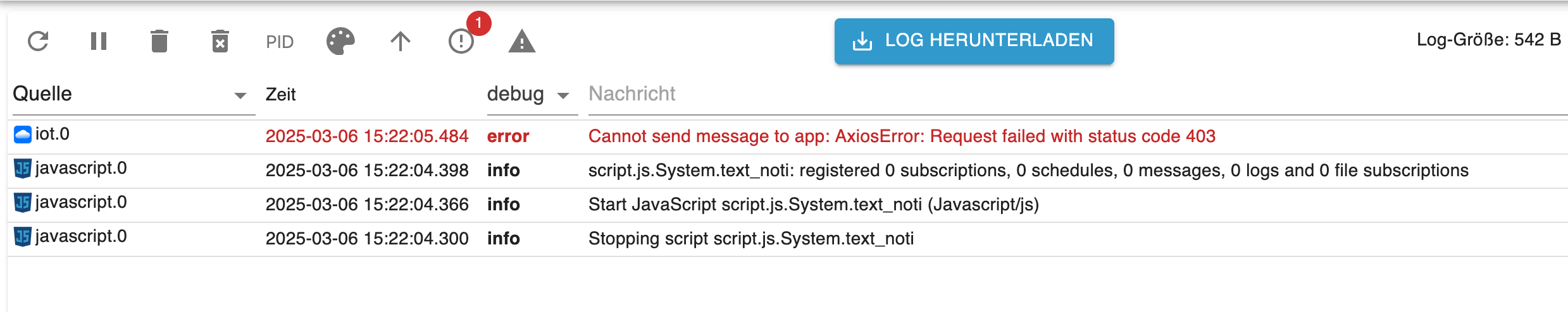 @flippi Ist dein Account der im iot Adapter hinterlegt ist auch in der App hinterlegt (default Projekt - externer Zugriff - Cloud)?