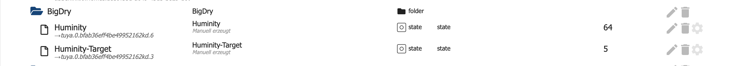 Das sind Wertelisten, wobei der Wert vom Typ "Zahl" ist. In den OBJEKTDATEN (Expertenmodus) stehen unter common.states die zugeordneten Zustände (als Text).