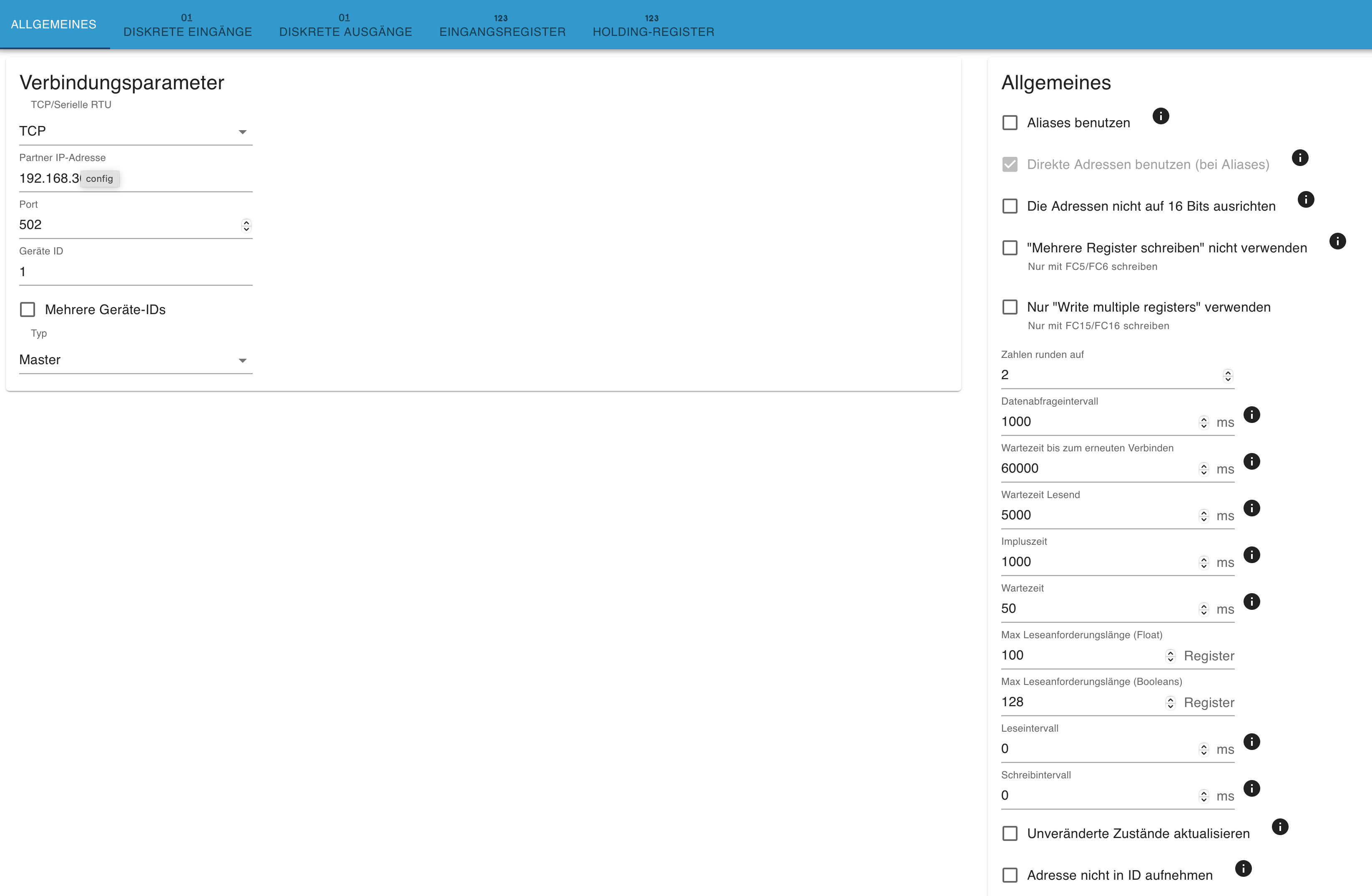 2025-05-07 19:03:36.591	info	starting. Version 6.3.2 in /opt/iobroker/node_modules/iobroker.modbus, node: v20.19.0, js-controller: 7.0.6
