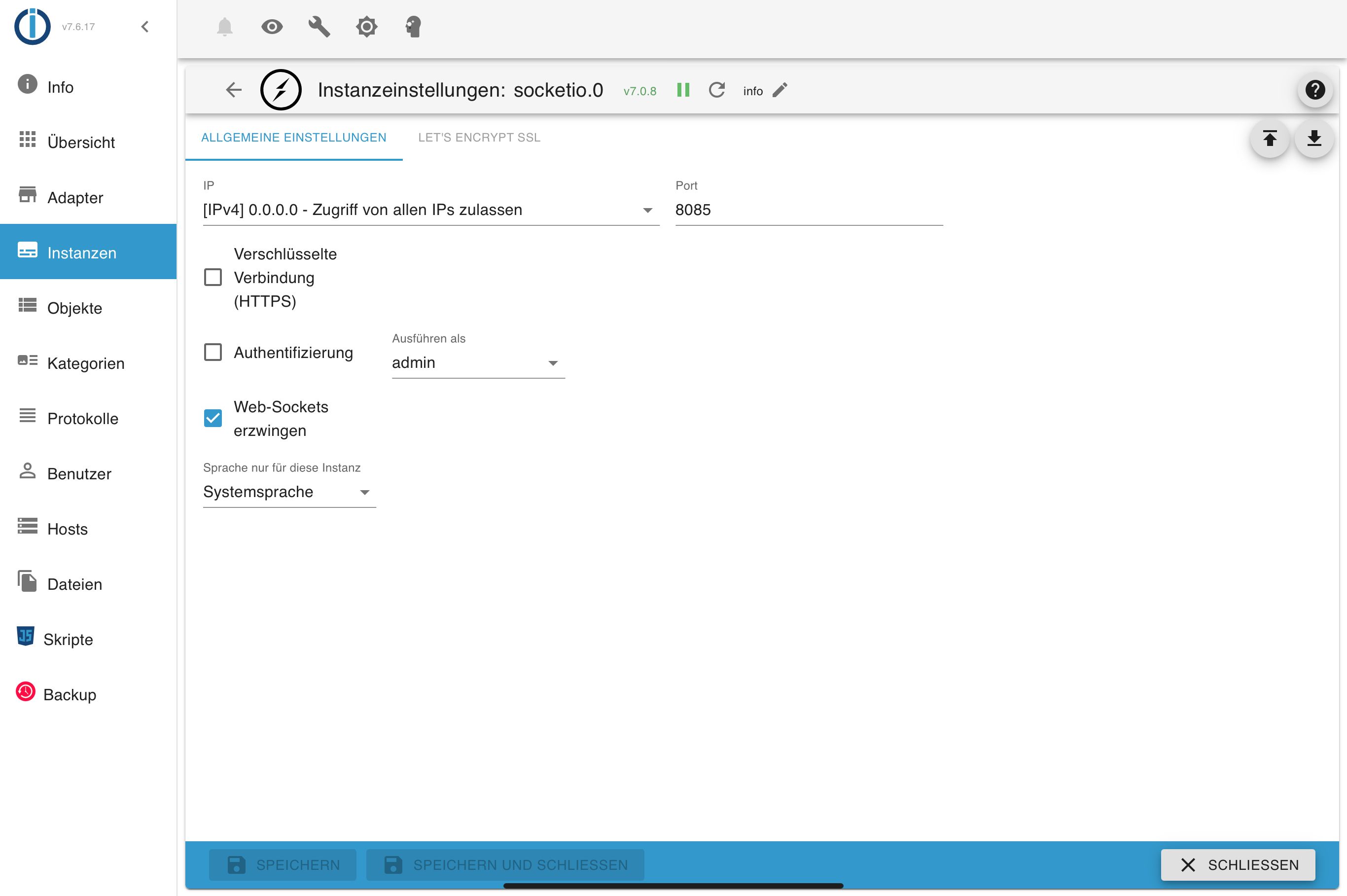 Adapter    "socketio"     : 6.7.1    , installed 7.0.8