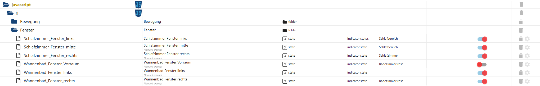 ich möchte nun den Meldungszustand der Fenster-Kontakte erfassen und auf ein virtuellen Datenpunkt legen den ich dann in der Vis abfrage.