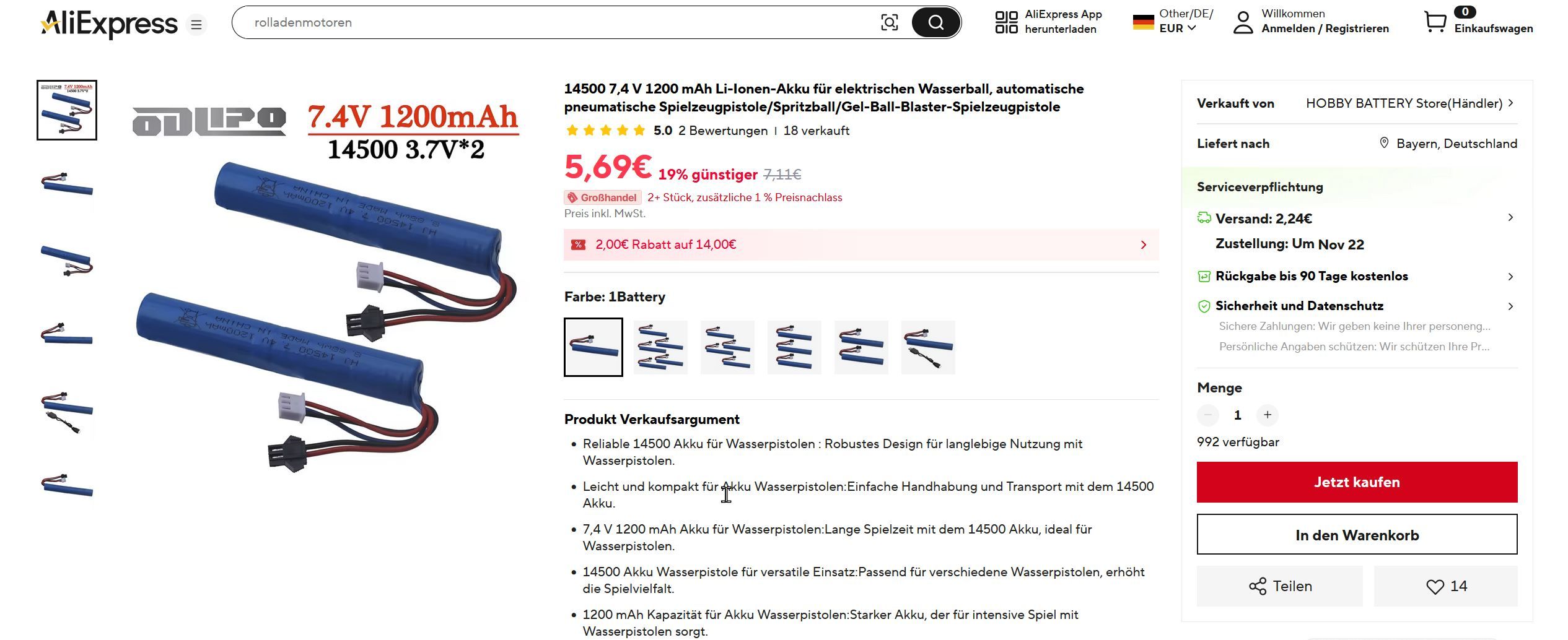 Ich konnte keinen Händler finden, der dieses Modell verkauft bzw. auf Lager hat, aber falls mein zweiter Motor soweit ist und der Ausbau diesmal klappt, würde ich mir so eine Alternative von AliExpress holen (1200mAh statt 800).