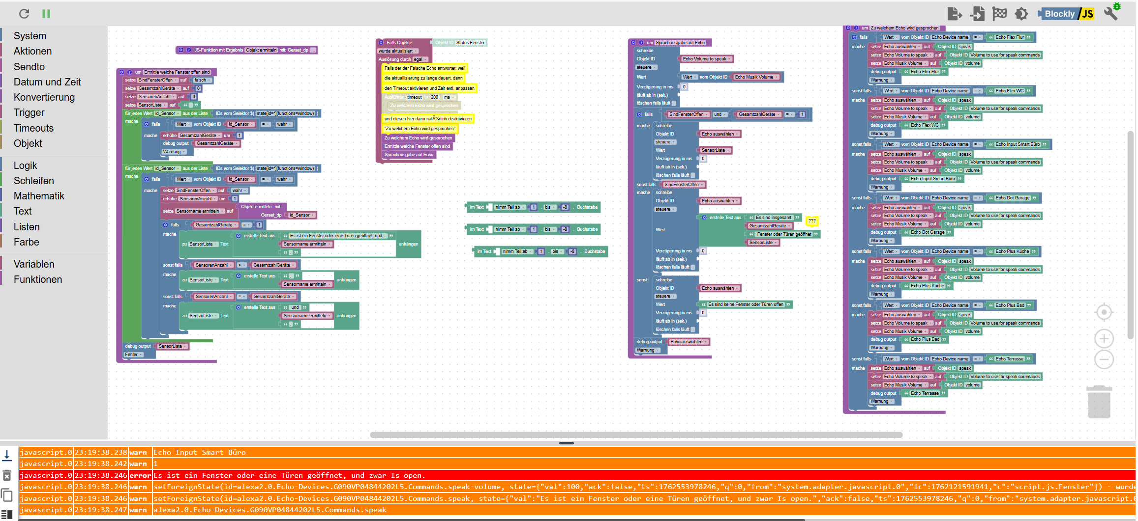 Die Routine löst durch das Gesagte, als Letztes die Fensterabfrage aus (siehe Routinen Screenshot).Mein Satz ist: Alexa, status bitte.