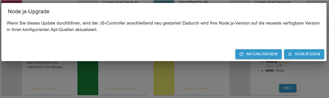 Habe alles so gemacht jetzt habe in der Übersicht Node.js: v22.21.0 in Grün.Mfg