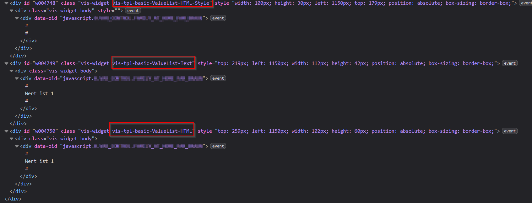ich versuche aktuell das Basic Widget "ValueList HTML Style" in meiner VIS-2 zu nutzen, allerdings ohne Erfolg.Ich habe ein Objekt, dass die Werte 0/1/2 haben kann. Allerdings ändert sich in der Oberfläche gar nichts.