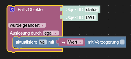 Es geht um eine Klimaanlagensteuerung die per Mqtt (Mosquitto Broker + IOB Mqtt-Client Adapter) eingebunden ist. Gesteuert wird über Blocklys und ein zusätzlichen Webinterface. Das ist bereits fertig und voll funktional.