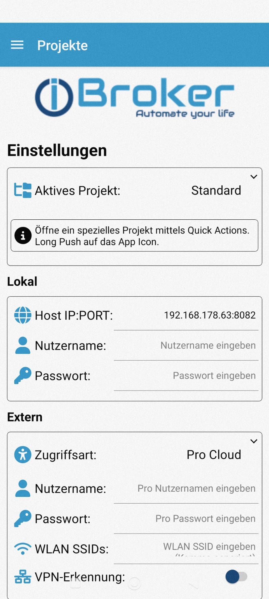 Seit neuerem bei einem meiner Andoid Handys verbindet sich die Visu App nur noch via pro.cloud.