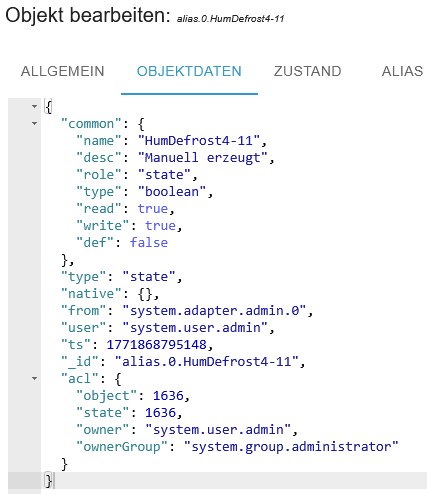 Ich habe lange überlegt, ob ich die Datenpunktstruktur mit Verzeichnissen (Ordnung mit Hierarchien ist mir sehr wichtig) unter "userdata.0" anlege oder als "alias.0". Es sollen ja