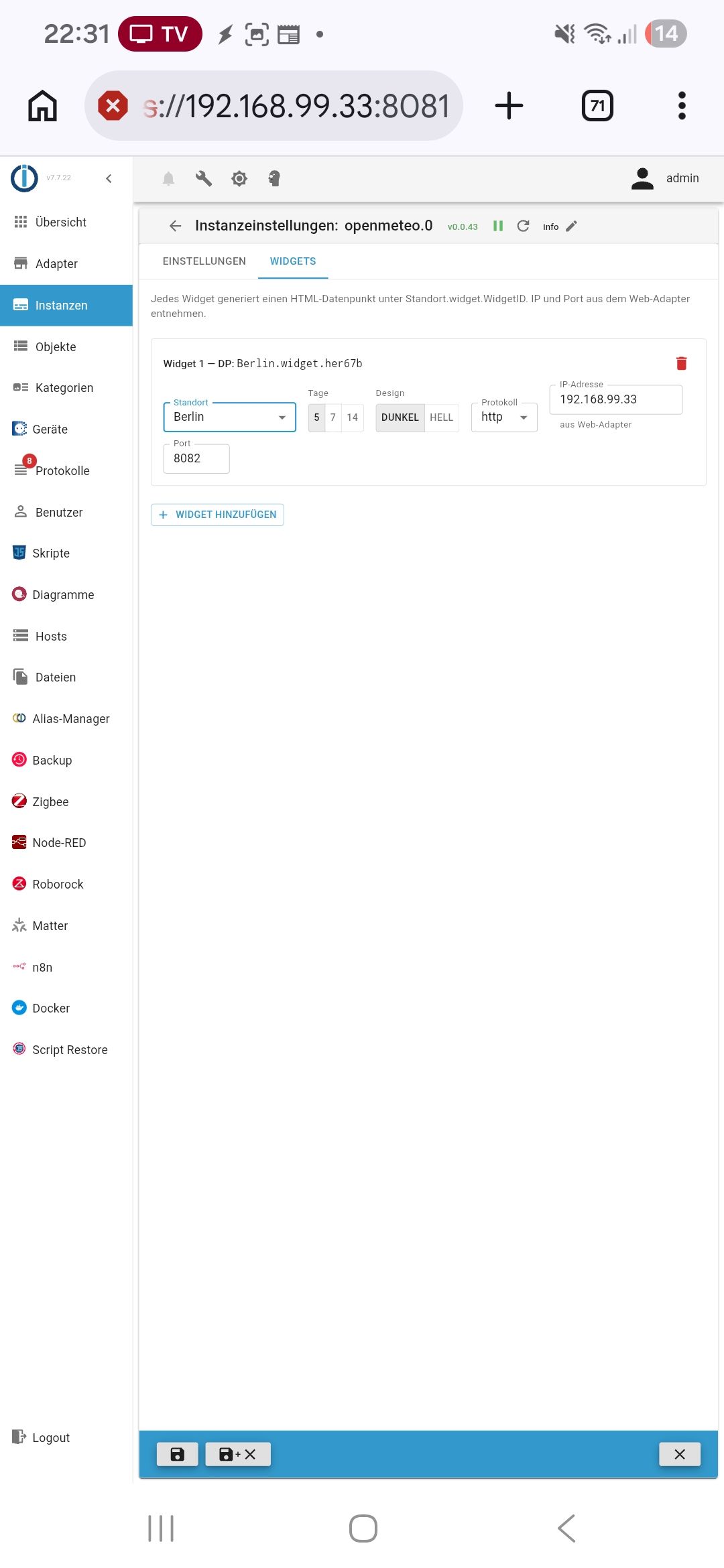 Hinweis: Im Latest-Repository gibt es bereits einen anderen openmeteo-Adapter — dann gibt's jetzt zwei. 😋