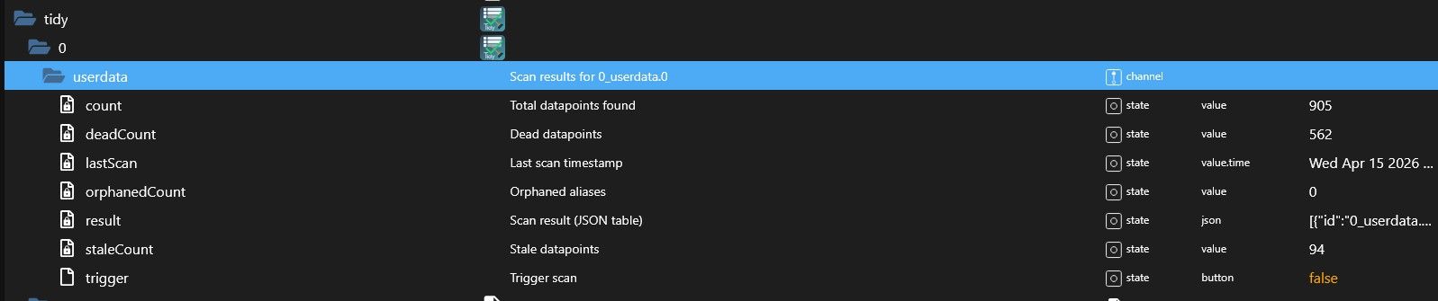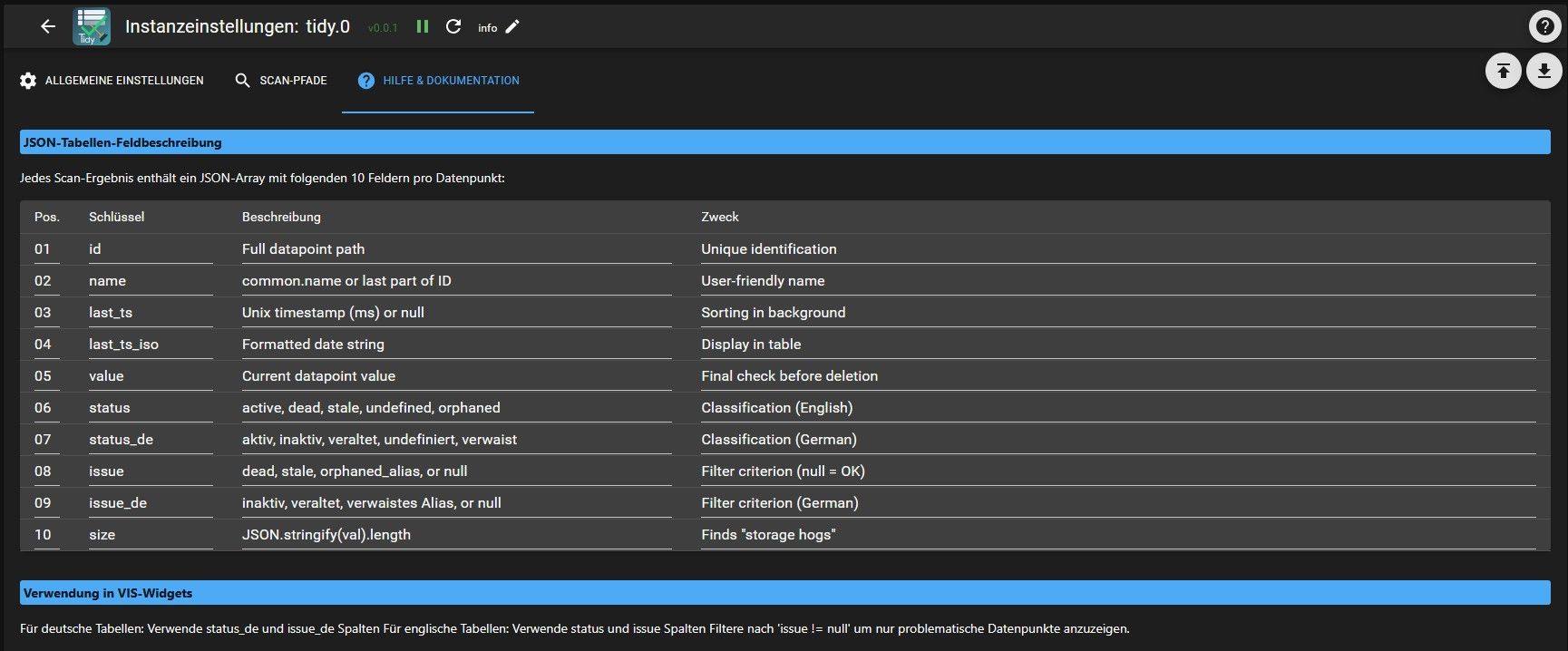 Die Tabelle aktualisiert sich sofort nach dem Klick auf den Button (tidy.0.userdata.trigger)