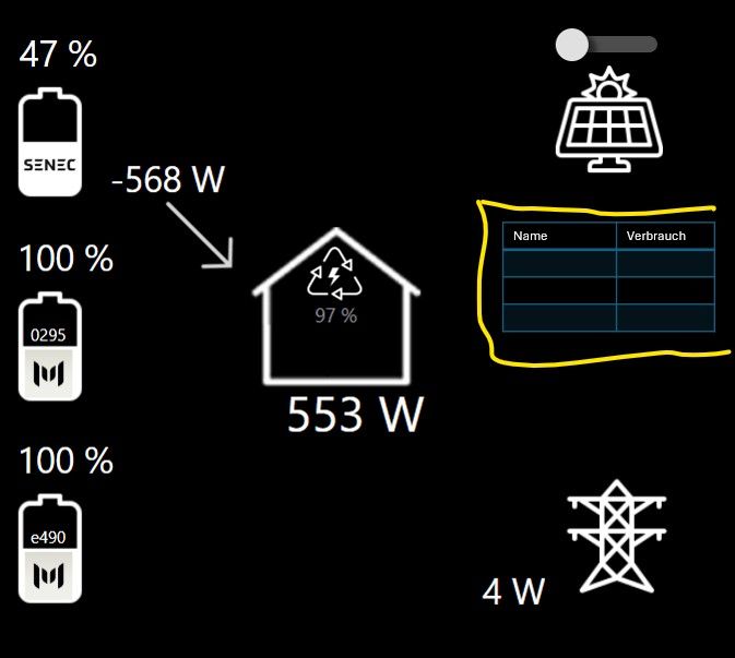 Ich möchte für eine VIS2 (PV Dashboard) eine "dynamische" Liste, die mir immer gerade die TOP 3 Stromverbraucher anzeigt in einer Tabelle. Name + aktueller Verbrauch.